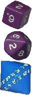 Polyhedral Dice Geometry Polyhedral geometry fascinates mankind in so many ways, from young children who play with simple block cubes to scientists who study the complex geometric shapes found in nature. Maybe it's the mathematical purity found in these solids that attracts us. A fair die is one that has an equal chance of landing on any one of its faces. The mathematical term for such solid shapes is Isohedra. Each face of an Isohedra solid has the same relationship with every other face and the same relationship to the solid's centre of gravity (this includes symmetry). These shapes are also convex, so each side can rest flat and flush on an even surface. This is described as a Group structure and gives us a mathematical equation defining Isohedra known as Euler's formula - (Vertices + Faces - Sides) = 2 Not all dice are fair and some dice manufacturers have produced dice that favour some sides more than others. These may be useful as a kind of averaging die. The following geometric categories classify the main types of polyhedral dice shapes you may come across.
